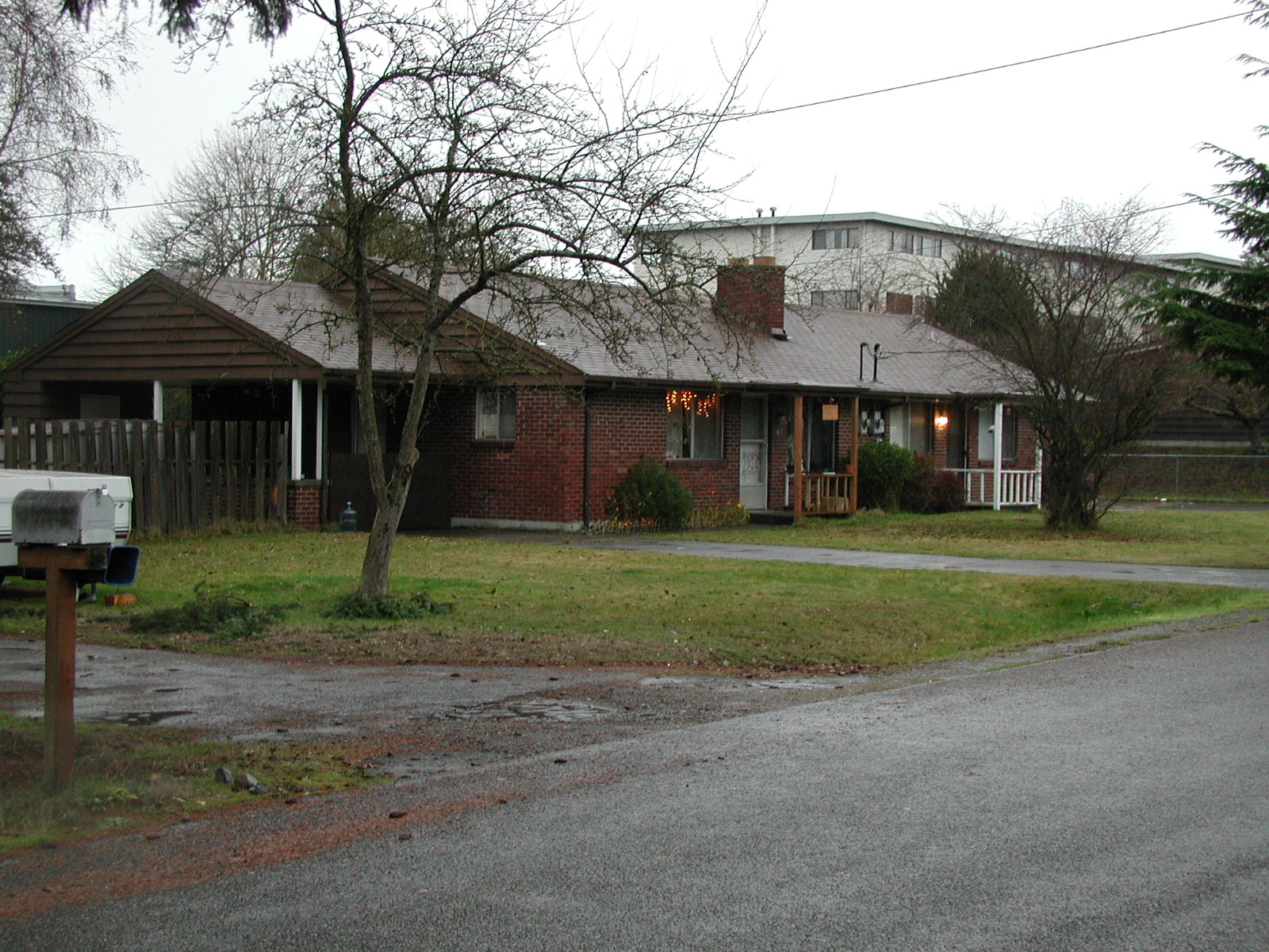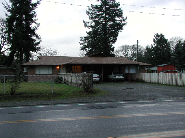 - 7411 20th Street West, University Place, WA (West Tacoma), 2 bedroom, brick 1 story duplex, built-in bookcases & hutch, fireplace, fenced yard, lots of storage, 840 square feet, built in 1959. New paint & carpets
